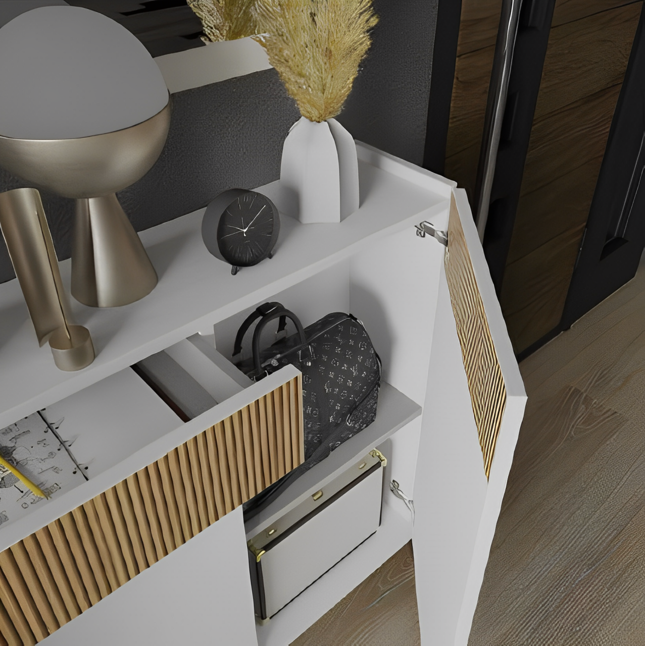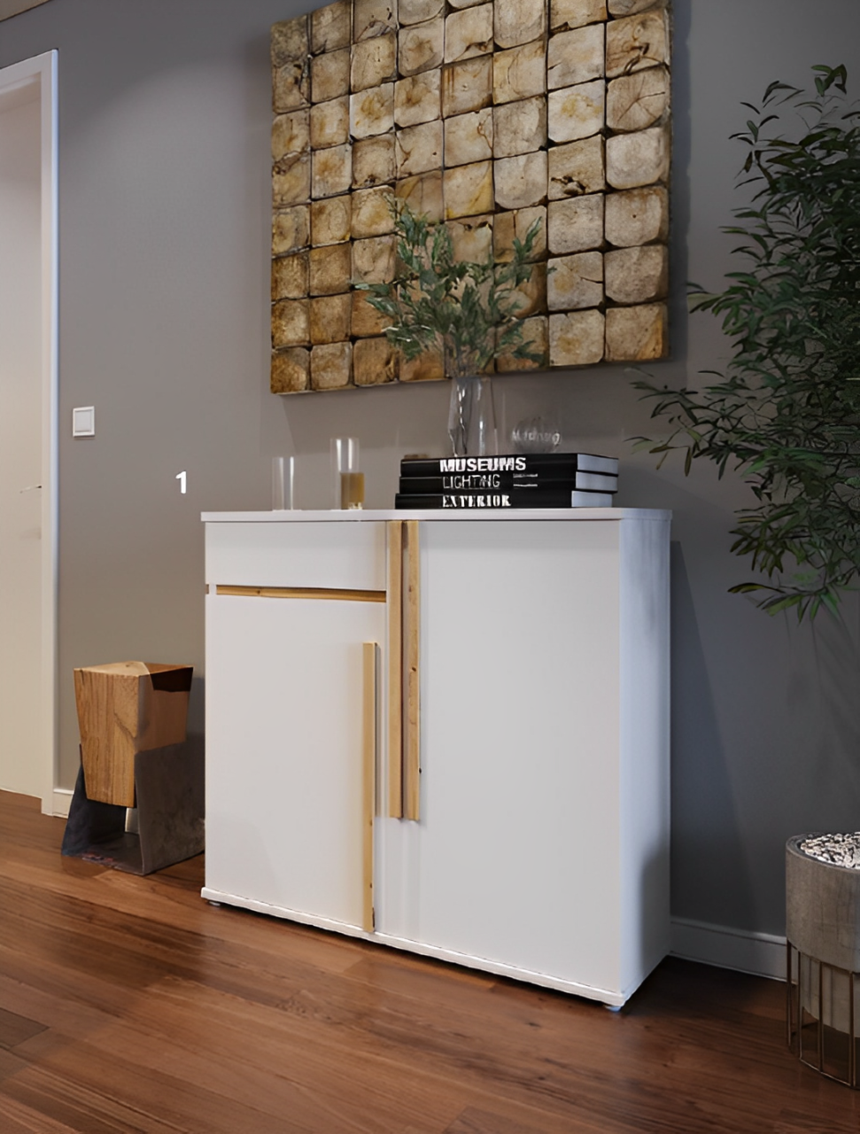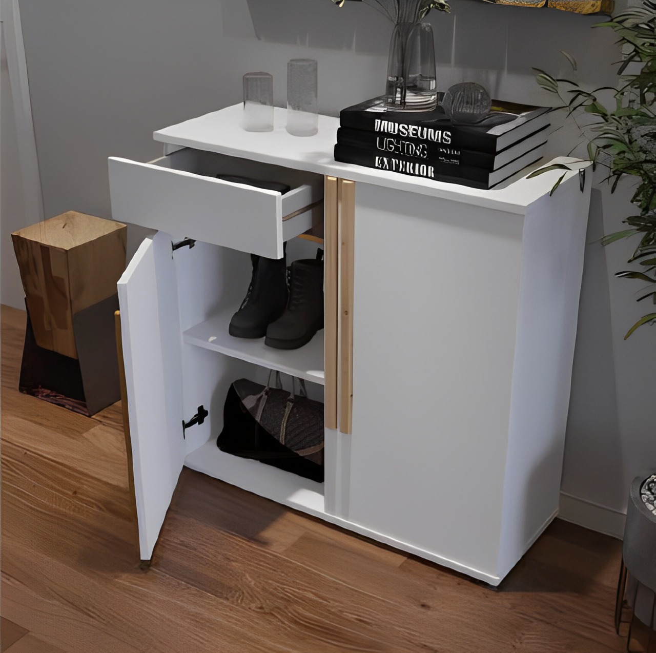 Recibidor – zapatero con un cajón y dos puertas.